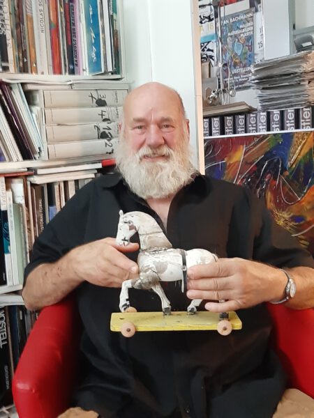 1956 in Radebeul geboren, wuchs Stefan Bachmann in Meerane auf. Schon während seiner Ausbildung zum Zerspanungsfacharbeiter faszinierte ihn der Reiz des Materials: aus Rest- und Fundstücken entstanden erste Skulpturen. Seine Großmutter, die ihn mit Kunst und Literatur vertraut machte, legte den Grundstein für seine künstlerische Neugier.
